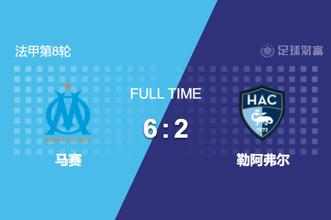 最终全场比赛结束,马赛主场6-2大胜勒阿弗尔。