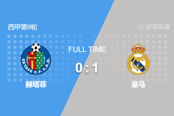 最终全场比赛结束,皇马客场1-0击败赫塔菲,登顶积分榜。