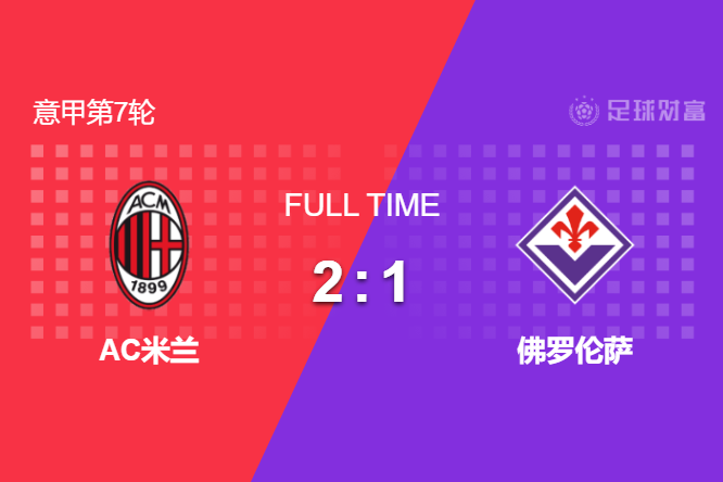 最终全场比赛结束,AC米兰主场2-1逆转佛罗伦萨,登顶意甲积分榜。