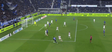 第82分钟,亚特兰大错失绝杀!卢克曼左路传中,后点的赞帕科斯塔右脚推射击中左侧立柱!!