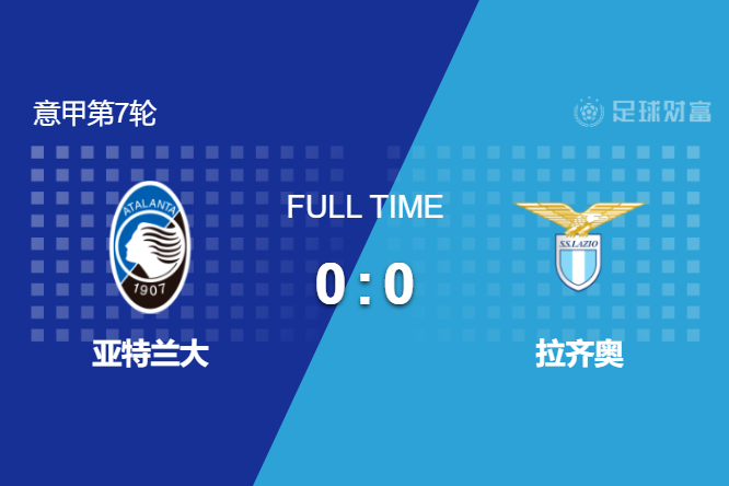 最终全场比赛结束,亚特兰大主场0-0战平拉齐奥。