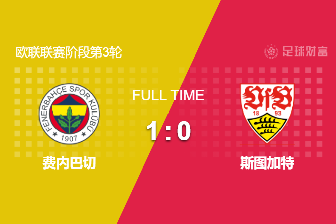最终全场比赛结束,费内巴切主场1-0击败斯图加特。