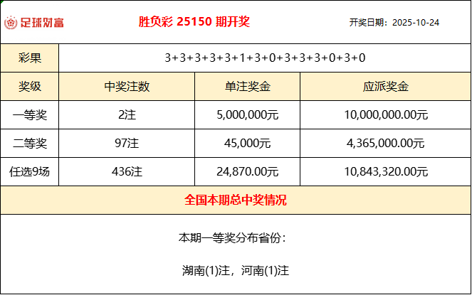 胜负彩25150期开奖:欧战冷门迭爆!头奖2注500万