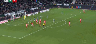 第57分钟,不莱梅开出左侧角球,博尼法斯头球抢点被防守球员挡出底线!