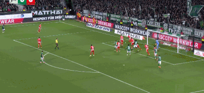 第72分钟,不莱梅打破僵局!菅原由势中场直塞,格吕尔右路突入禁区,内切左脚弧线球兜射打进左上角,1-0!!