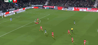 第16分钟,博尼法斯禁区外左脚凌空抽射,偏出右侧立柱!