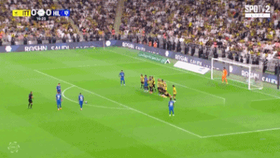 第17分钟,迪亚比主罚禁区右侧任意球,左脚弧线球兜射偏出左侧立柱!