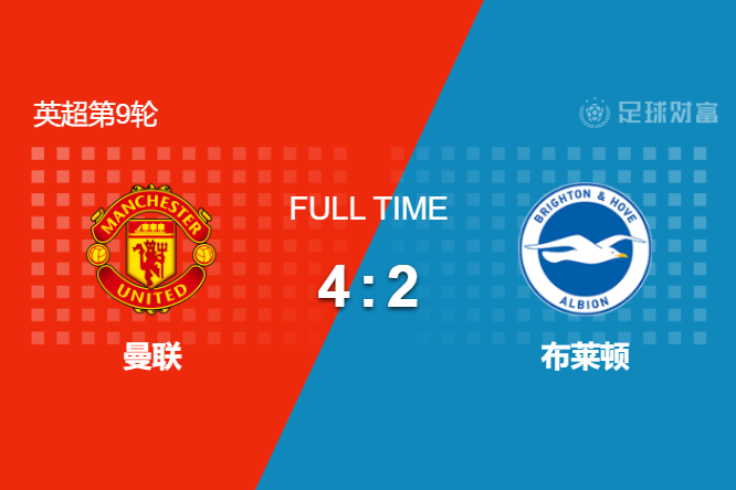 最终全场比赛结束,曼联4-2击败布莱顿,升至积分榜第四!