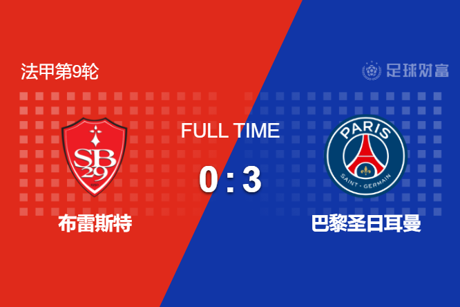 最终全场比赛结束,巴黎圣日耳曼客场3-0击败布雷斯特。