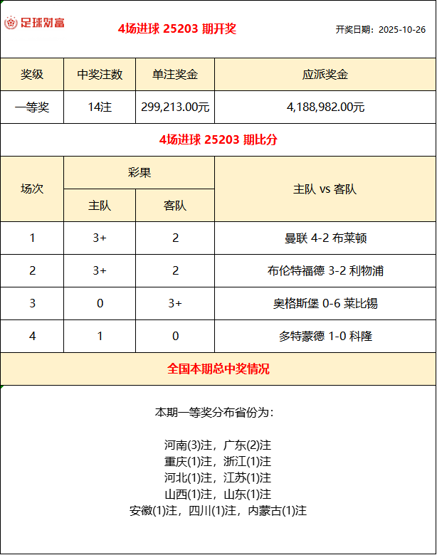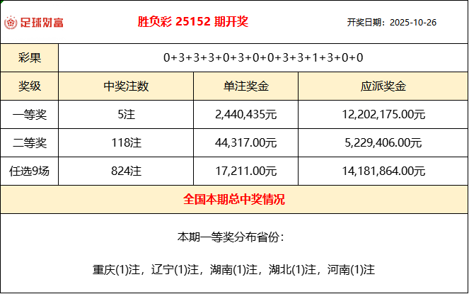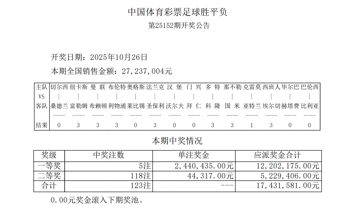 胜负彩25152期开奖:切尔西遭绝杀!头奖5注244万