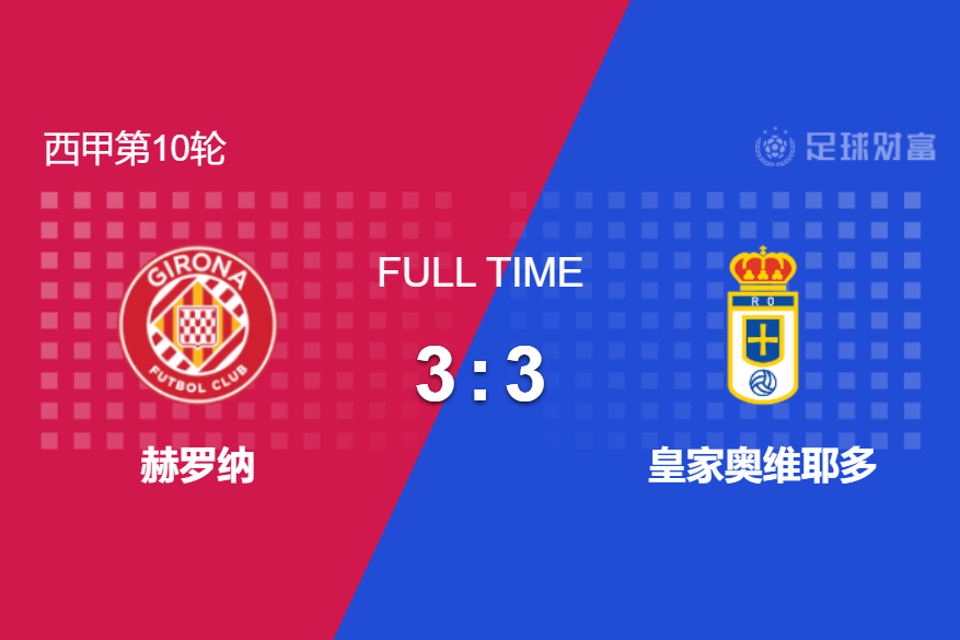 最终全场比赛结束,赫罗纳3-3战平皇家奥维耶多。