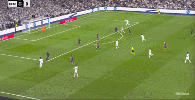 第43分钟,皇马再次领先!维尼修斯左路强突送出传中,米利唐后点力压巴尔德头球摆渡,门前的贝林厄姆轻松打进空门,2-1!!