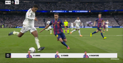 第38分钟,巴萨扳平!居莱尔后场丢球,拉什福德助攻费尔明破门,1-1!!