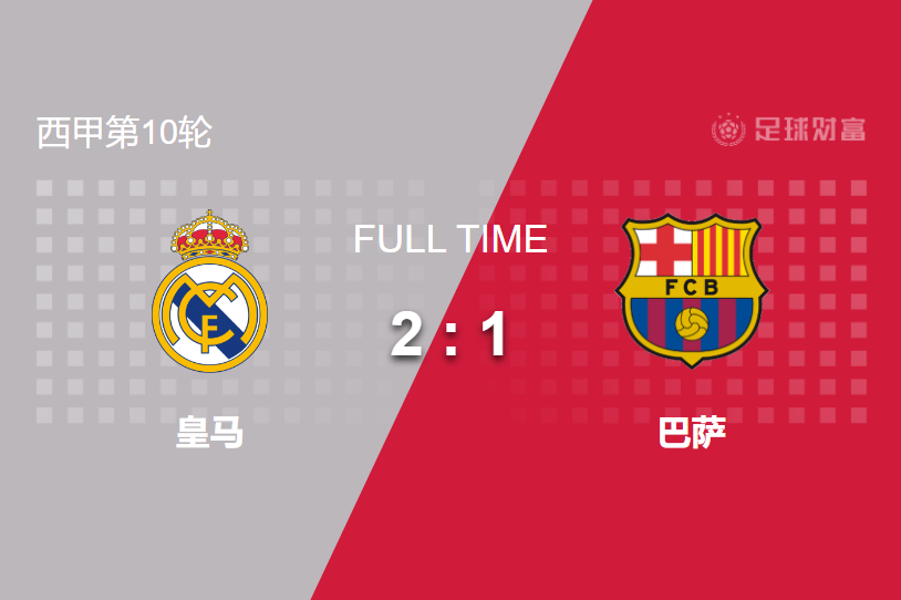 最终全场比赛结束,皇马2-1力克巴萨,以5分优势领跑积分榜。