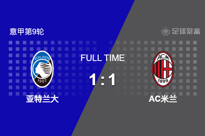 最终全场比赛结束,亚特兰大主场1-1战平AC米兰。