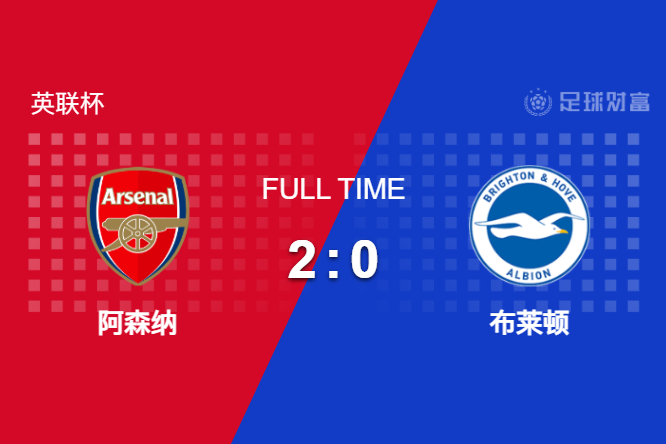 最终全场比赛结束,阿森纳主场2-0战胜布莱顿。
