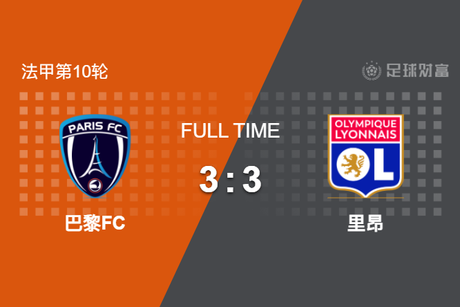 最终全场比赛结束,巴黎FC主场3-3战平里昂。