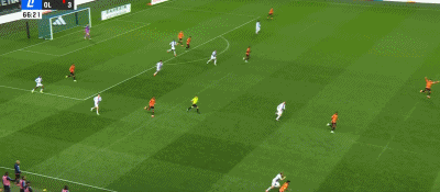 第58分钟,舒尔茨半场单刀球面对门将巧妙挑射扩大比分,里昂3-0。