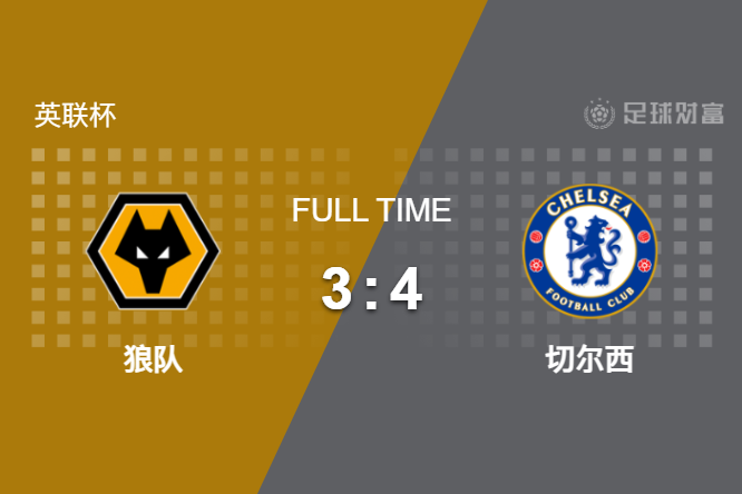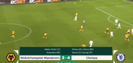 最终全场比赛结束,十人切尔西客场4-3险胜狼队。