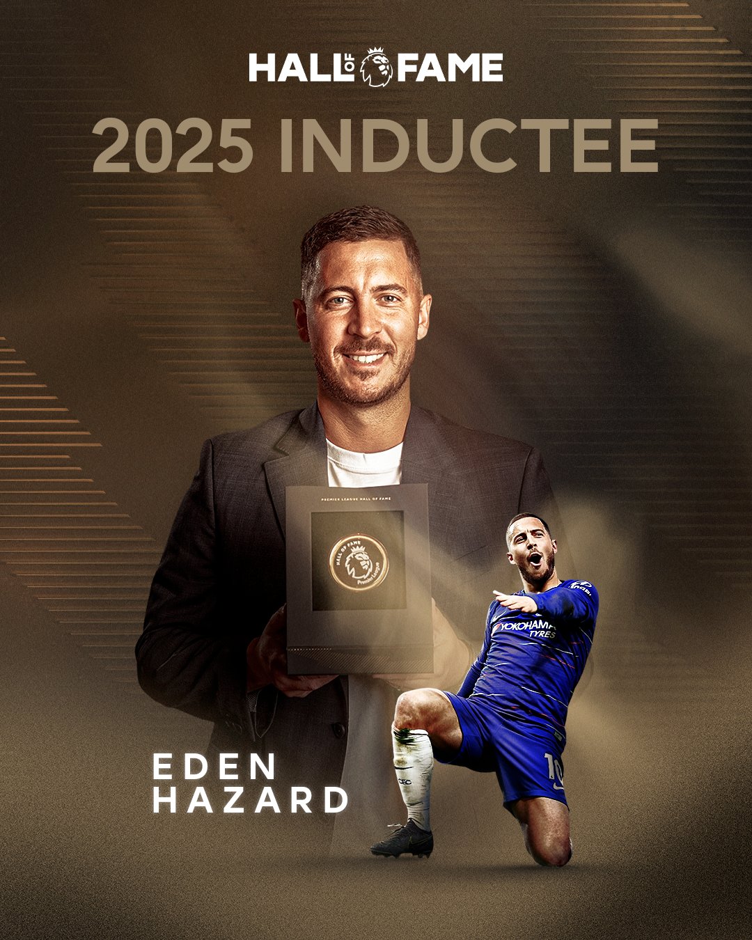 昔日切尔西前锋阿扎尔正式入选英超名人堂,成为第26位获得英超联盟最高荣誉的球员。