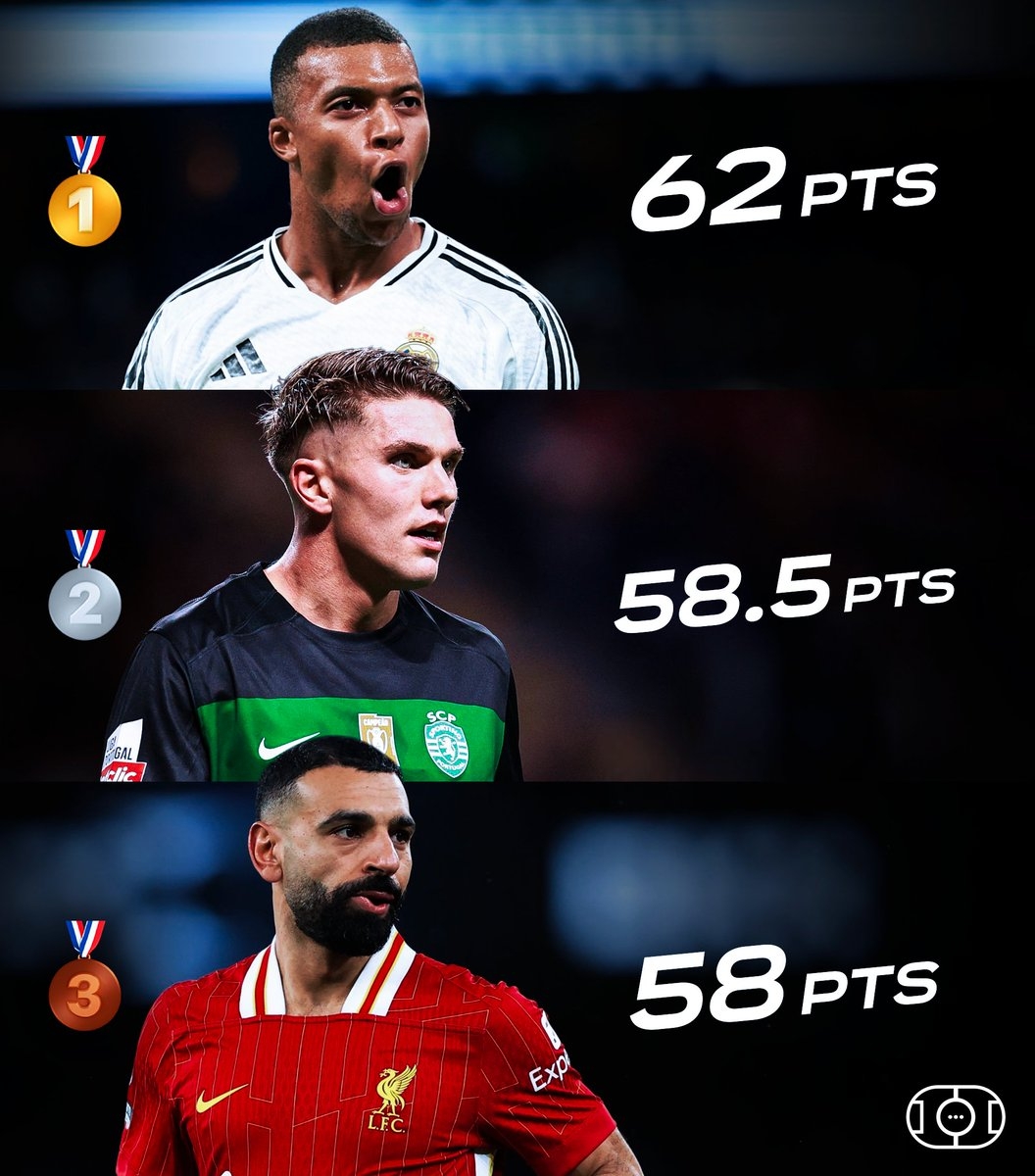 上赛季,姆巴佩西甲34轮打进31球,个人首次获得欧洲金靴和西甲金靴,他也是乌戈·桑切斯和C罗之后第三次获此殊荣的皇马球员。