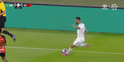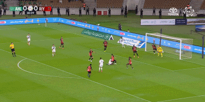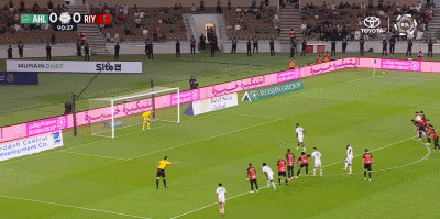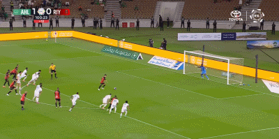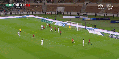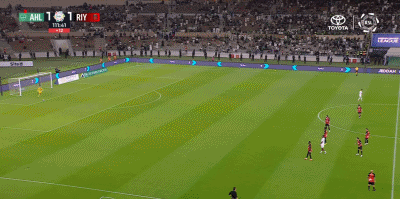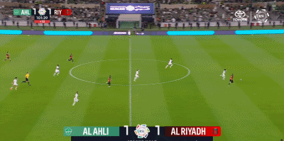 第90+11分钟,海巴里禁区内解围直接踢翻对手送点,托则操刀命中完成绝平,利雅得体育1-1。