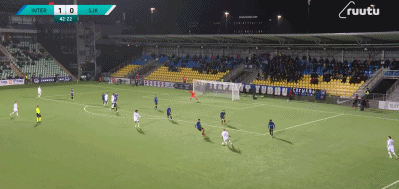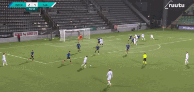 第45+2分钟,凯卡莱宁禁区内乱战破门,十人图尔库国际2-1再次领先。