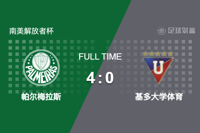 最终全场比赛结束,帕尔梅拉斯总比分4-3逆转基多大学体育,与弗拉门戈会师决赛。