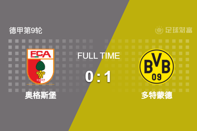 最终全场比赛结束,多特蒙德客场1-0战胜奥格斯堡。