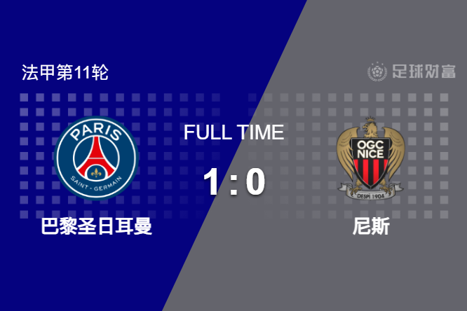 最终全场比赛结束,巴黎主场1-0战胜尼斯。