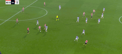 第38分钟,布莱斯-门德斯中路推射被门将化解,随后自己补射破门,皇社1-0。