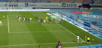 第19分钟,水原右路传中送入禁区,崔圭伯后点近距离包抄被门将神勇化解!
