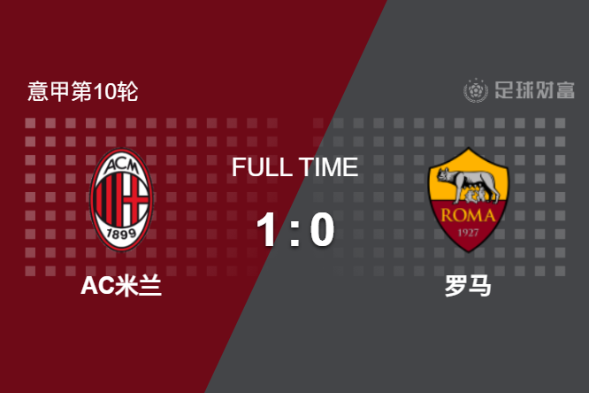 最终全场比赛结束,AC米兰主场1-0险胜罗马。