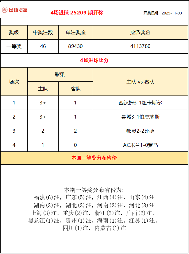 本期竞猜场次结果: