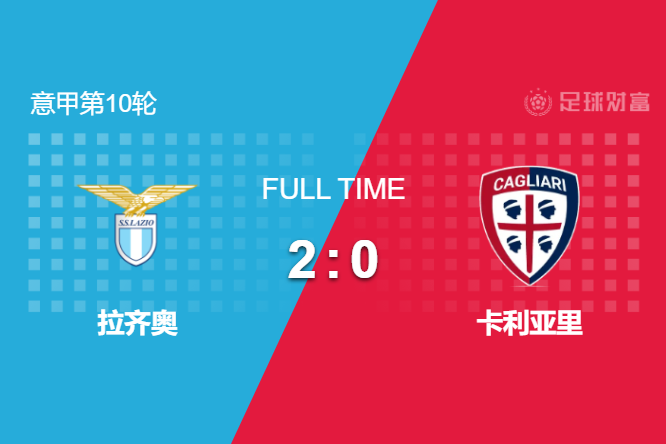 最终全场比赛结束,拉齐奥主场2-0完胜卡利亚里。