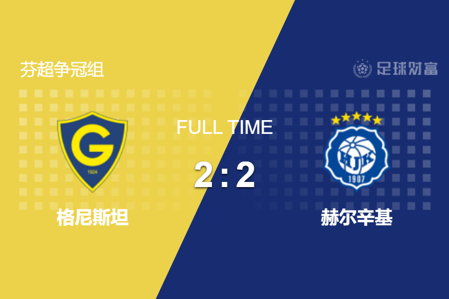 最终全场比赛结束,格尼斯坦2-2战平赫尔辛基。
