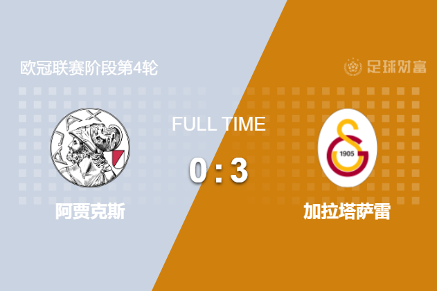 最终全场比赛结束,加拉塔萨雷客场3-0大胜阿贾克斯,送给对手欧冠4连败。