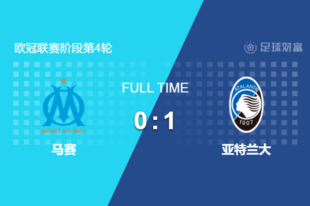 最终全场比赛结束,亚特兰大客场1-0绝杀马赛。