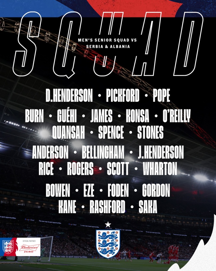 英格兰公布11月世预赛名单,其中贝林厄姆、福登回归,阿诺德无缘本次国家队大名单。