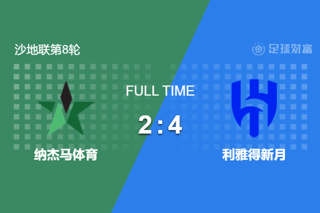 最终全场比赛结束,利雅得新月客场4-2击败纳杰马。