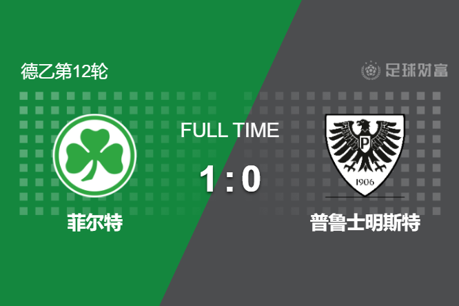 最终全场比赛结束,菲尔特主场1-0绝杀明斯特普鲁士。
