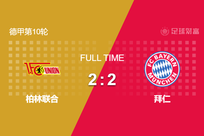 最终全场比赛结束,拜仁客场2-2绝平柏林联合,开季16连胜告终,依旧保持不败金身。