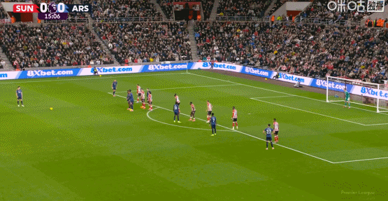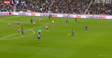 上半场补时阶段,阿森纳左路起球,萨卡后点头球摆渡,萨利巴禁区内凌空抽射打飞!