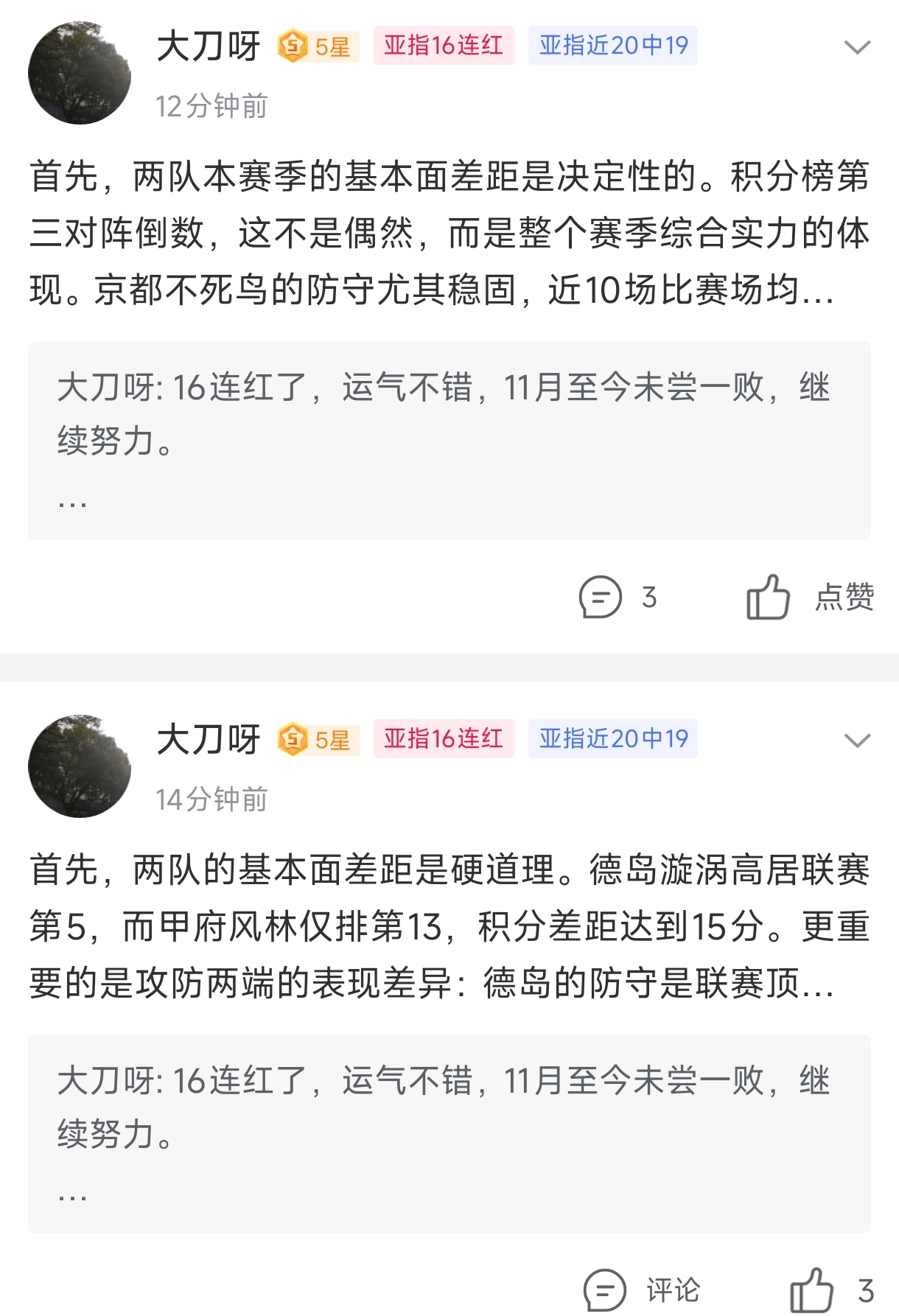亚指16连红大佬“大刀呀 ”,两场早场日本已发帖子评论区,速度去看下,别错过~