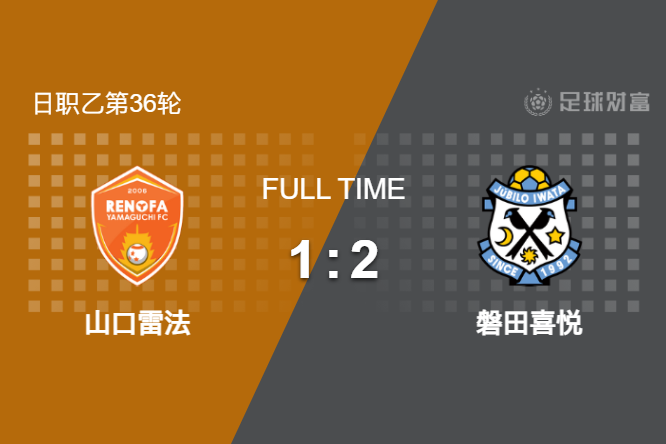 最终全场比赛结束,磐田喜悦客场2-1战胜山口雷法取得三连胜。
