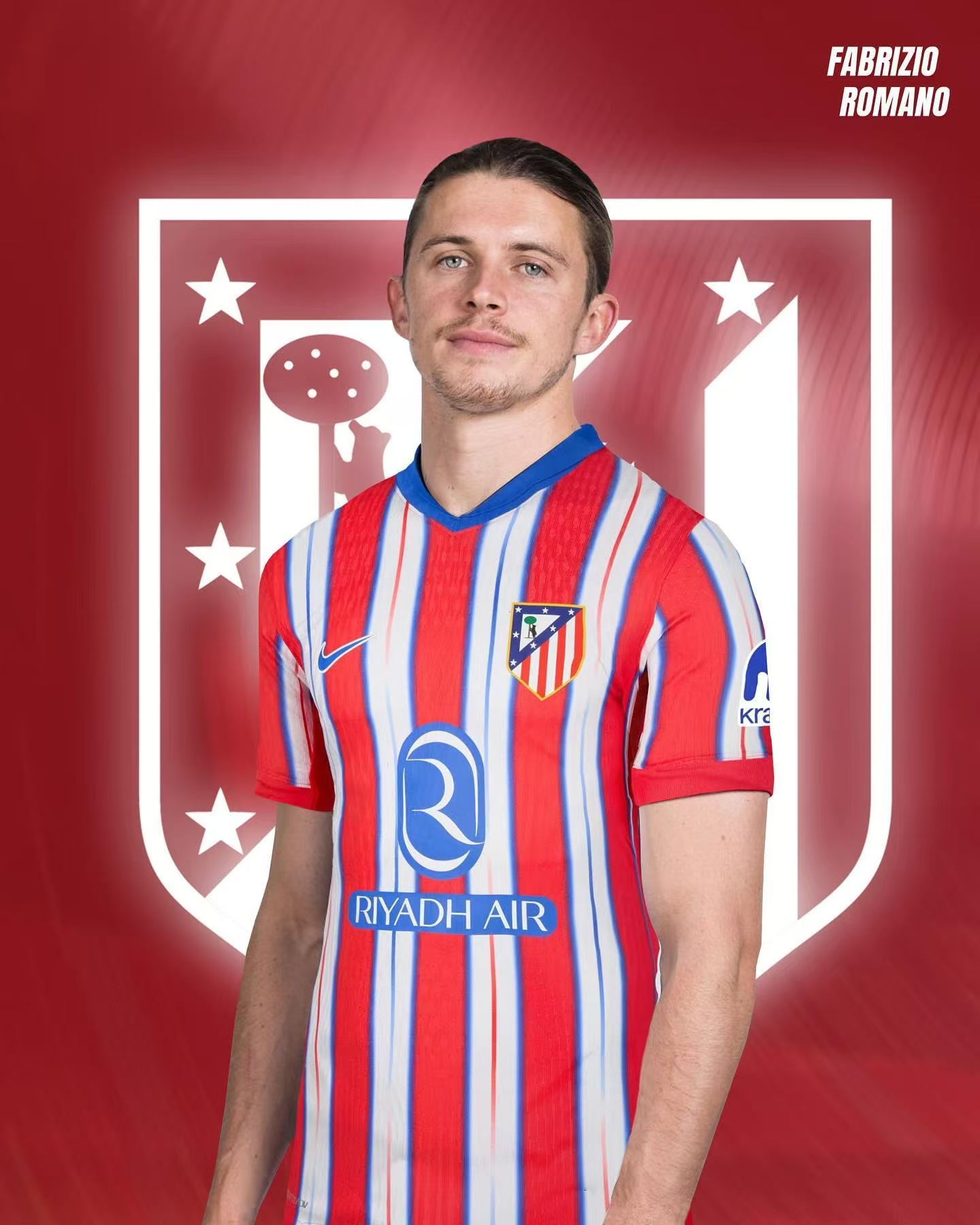 2024年夏天,加拉格尔从切尔西以4200万欧元转会马竞,至今代表床单军团出战66场,贡献6球6助攻。