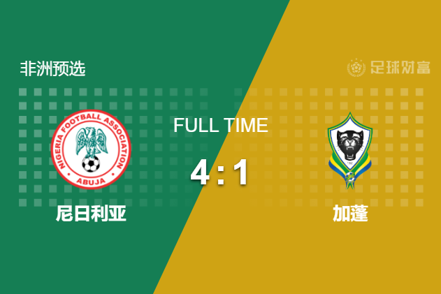 最终全场比赛结束,尼日利亚通过加时赛4-1击败加蓬,非洲附加赛决赛将迎战民主刚果。