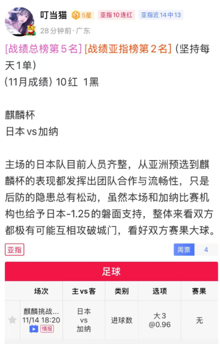 10连红大神发车!日本vs加纳即将开赛,观点已出炉>>