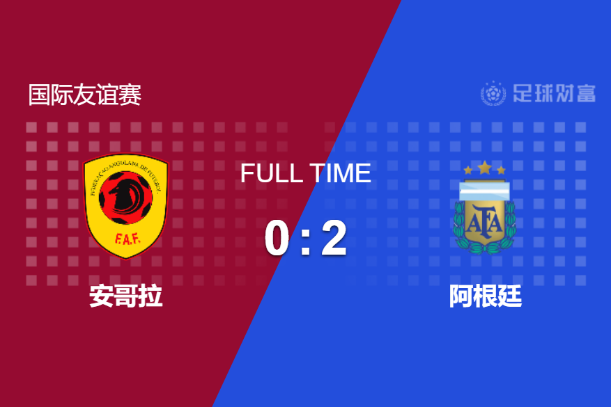 最终全场比赛结束,安哥拉主场0-2不敌阿根廷。