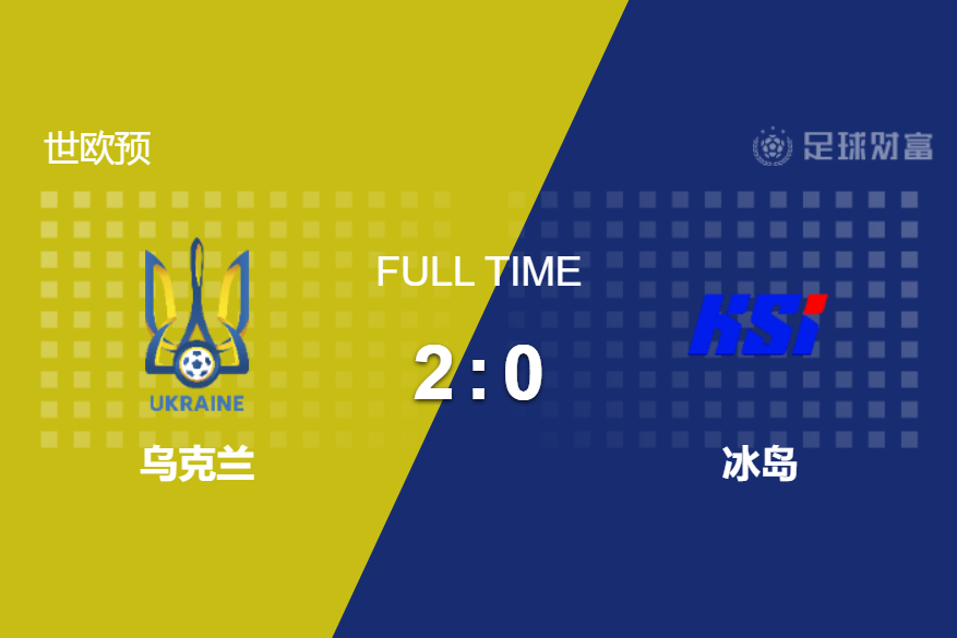 最终全场比赛结束,乌克兰2-0击败冰岛,成功杀入世界杯附加赛。